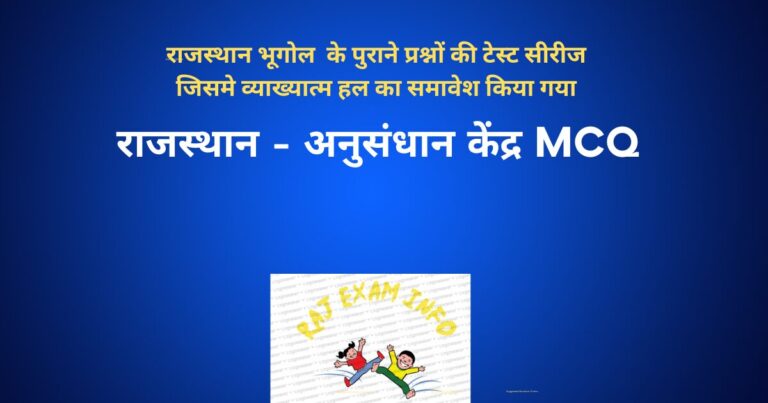 राजस्थान – अनुसंधान केंद्र MCQ / TEST / QUIZ