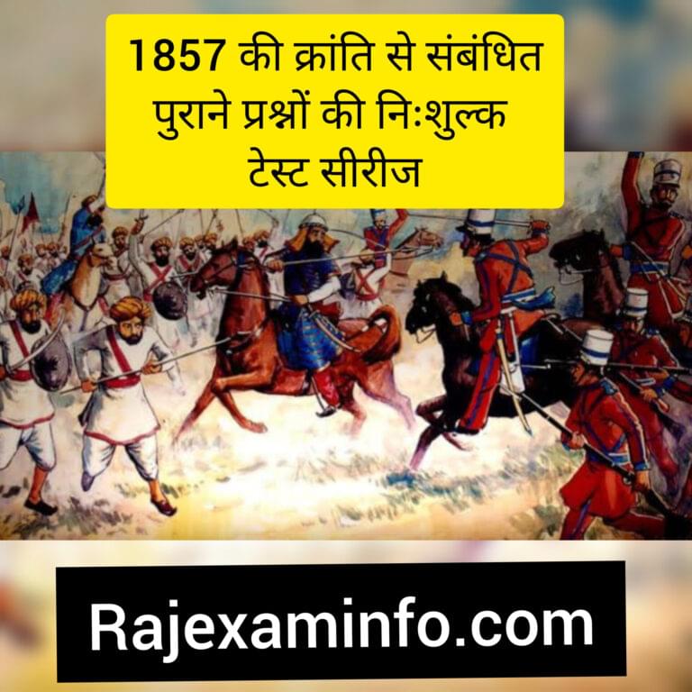 राजस्थान 1857 की क्रांति || MCQ PREVIOUS Question 1857 Revolution In Rajasthan